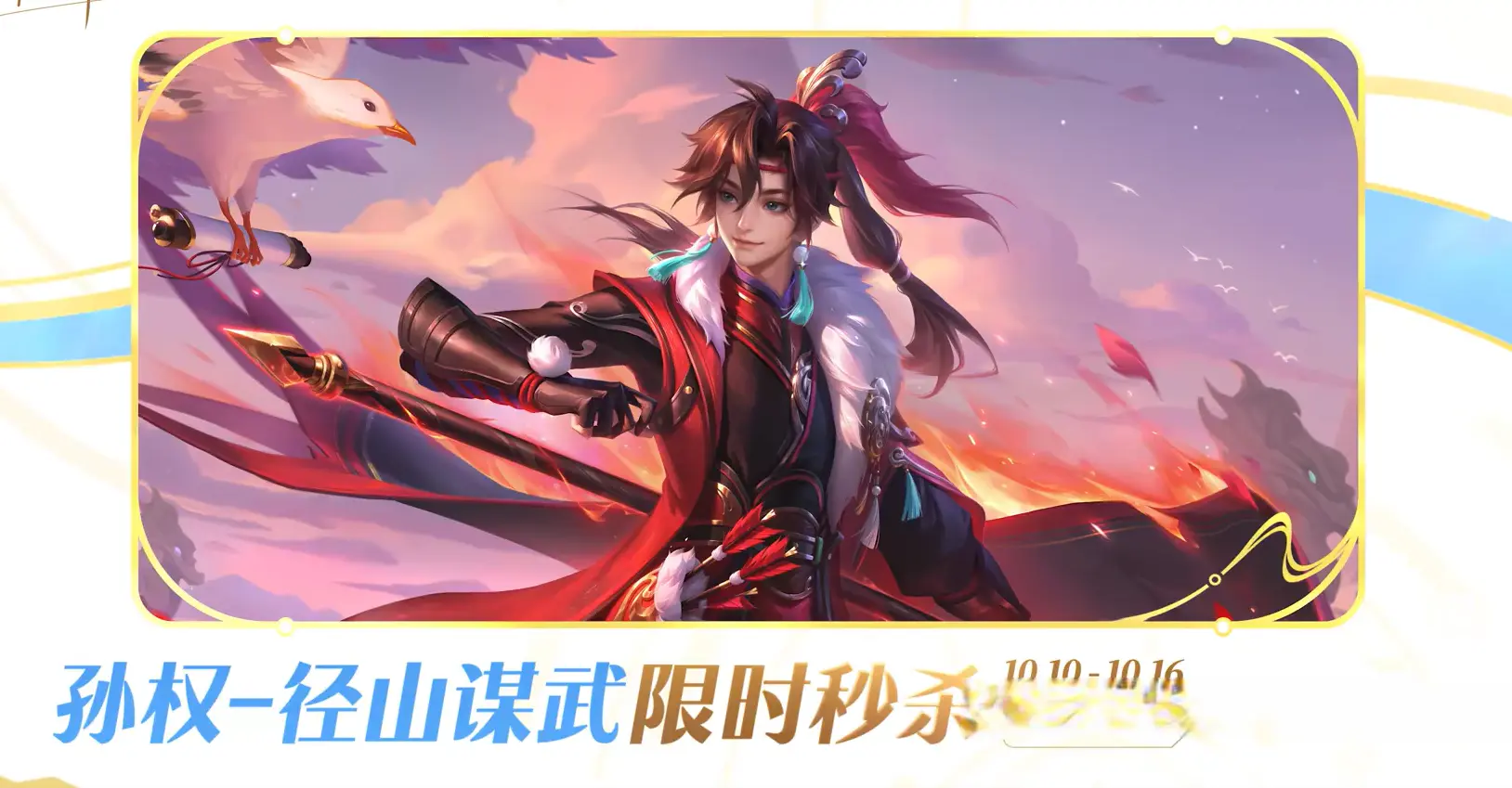 孙权的首款皮肤将在10月10日上架,首周折扣60点券或48个皮肤碎片兑换。